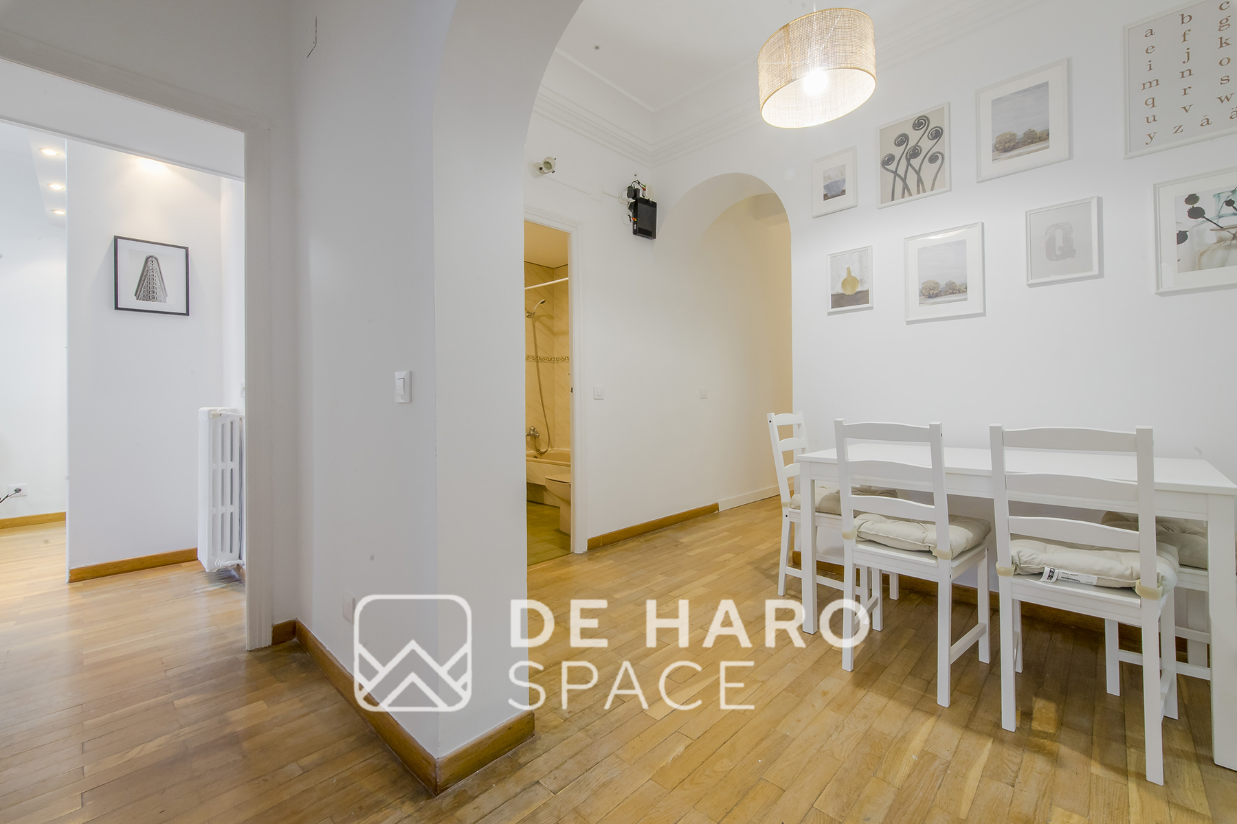 Piso reformado en el Distrito de Salamanca de 120 m², 6 dormitorios y 2 baños completos. Tiene portero durante el día, de lunes a viernes. El piso está ubicado cerca de los Metros de Manuel Becerra, Lista y Goya. También muy cerca de varias líneas de autobuses que conectan con toda la ciudad. La vivienda está ubicada muy cerca de supermercados, comercios, centros de salud y gimnasios; unido a una intensa vida social, cultural y de ocio en toda la zona. El piso es grande y acogedor.